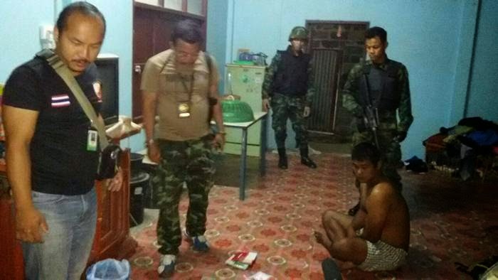 กอ.รมน.จว.ม.ห.(ท) บูรณาการร่วมกับ สน.เรือมุกดาหาร ตม.มุกดาหาร กกล.สุรศักดิ์มนตรี จนท.หน่วยข่าวกรองทางทหาร เข้าจับกุมนายสาธิต โคชขึง อายุ ๓๐ ปี พร้อมยาบ้าสีส้ม ๓๕๐ เม็ด สีเขียว ๔ เม็ด