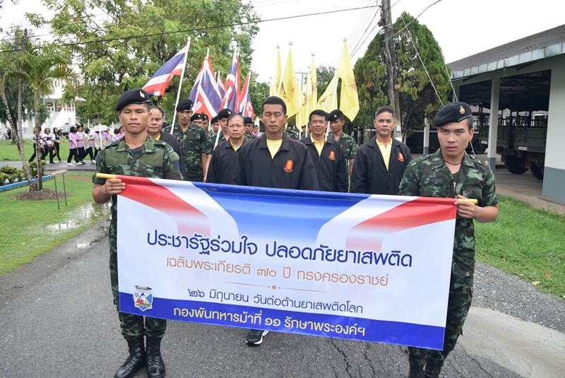 เมื่อวันที่ 24มิ.ย.59 พันโท อำนาจ วชิรศักดิ์โสภานะ ผู้บังคับกองพันทหารม้าที่11รักษาพระองค์ฯ(ม.พัน 11รอ.) มอบหมายให้ พ.ต.วรสิทธิ์ เกตุเจริญ นายทหารยุทธการและการฝึก ม.พัน 11รอ.เป็นประธานเปิดกิจกรรมการรณรงค์ต่อต้านยาเสพติด มี กำลังพล นายทหาร นายสิบ และพลทหาร ครอบครัวกำลังพล นักเรียนวิวัฒน์พลเมือง และประชาชนที่อาศัยอยู่ในชุมชนรอบค่าย พร้อมคณะนักเรียนโรงเรียนเทศบาล 3 (วัดบ้านอ้อย) เข้าร่วมกิจกรรมเดินรณรงค์ต่อต้านยาเสพติด