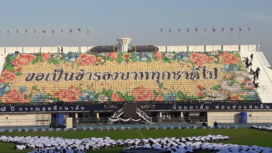 วันที่ 19 มกราคม 2560 เวลา 14.00 -17.30 น. จังหวัดสุพรรณบุรี โดย ว่าที่ร้อยตรีสุพีร์พัฒน์ จองพานิช ผู้ว่าราชการจังหวัดสุพรรณบุรี จัดใหญ่งาน “สุพรรณบุรีน้อมอาลัย สำนึกในพระมหากรุณาธิคุณ ” พระบาทสมเด็จพระปรมินทรมหาภูมิพลอดุลยเดช ณ สนามกีฬาจังหวัดสุพรรณบุรี อำเภอเมือง จังหวัดสุพรรณบุรี ด้วยการแปรอักษรเป็นภาพพระราชกรณียกิจพระบาทสมเด็จพระปรมินทรมหาภูมิพลอดุลยเดช โดยข้าราชการ ประชาชน/กลุ่มพลังมวลชน และนักเรียนนักศึกษาทุกสังกัด ยืนเป็นรูปเลขเก้าไทย ตลอดจนการจัดนิทรรศการพระราชกรณียกิจ เพื่อให้ประชาชนได้ชื่นชมพระบารมี ด้วยสำนึกในพระมหากรุณาธิคุณ และยังความปลาบปลื้มปีติ แก่ชาวสุพรรณบุรี อย่างหาที่สุดมิได้