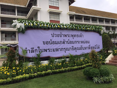 ที่สนามหน้าเสาธงโรงเรียนกาญจนาภิเษกวิทยาลัยสุพรรณบุรี นายวิรัตน์ เฉิดฉวีวรรณ ผู้อำนวยการโรงเรียนกาญจนาภิเษกวิทยาลัย สุพรรณบุรี นำคณะครู บุคลากรทางการศึกษา คณะกรรมการสถานศึกษาขั้นพื้นฐาน คณะกรรมการสมาคม ผู้ปกครอง และนักเรียน ประกอบพิธี “ น้อมศิระกรานพระภูบาลภูมิพล ” พร้อมนำกล่าวรำลึกในพระมหากรุณาธิคุณและถวายความอาลัยพระผู้เสด็จสู่สวรรคาลัยพระบาทสมเด็จพระปรมินทรมหาภูมิพลอดุลยเดช บรมนาถบพิตร /ร้องเพลงสรรเสริญพระบารมี/เพลงรักพ่อไม่มีวันพอเพียง/สงบนิ่ง 89 วินาที/ขับเสภารำลึกในพระมหากรุณา โดย นายกกกร กิจดี ตัวแทนนักเรียน ด้วยสำนึกในพระมหากรุณาที่คุณอันหาที่สุดไม่ได้ ที่มีต่อพสกนิกรชาวไทยมาโดยตลอดพระชนม์ชีพ ทรงบำเพ็ญด้วยพระวิริยะอุตสาหะ ตรากตรำพระวรกายอย่างที่สุด ด้วยพระเมตตาคำนึงถึงประโยชน์สุขของประชาชนไทยไทย เพื่อความร่มเย็นเป็นสุขของพสกนิกร ความมั่นคงของประเทศ ทรงเป็นขวัญและกำลังใจของปวงอาณาประชาราษฎร์ เป็นที่ซาบซึ้งประทับในดวงใจ ของประชาชนชาวไทย