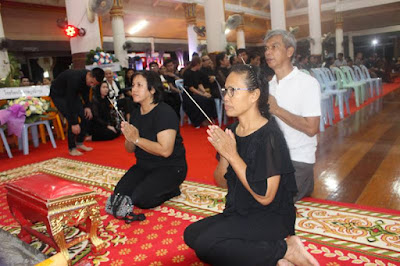 โดยพิธีสวดพระอภิธรรมศพ คุณพ่อสุรินทร์ พุ่มเพชร์ คืนนี้เป็นคืนที่สอง มีเจ้าภาพ ร่วมบำเพ็ญกุศล แลพ สวดพระอภิธรรมศพ กว่า สิบเจ้าภาพ คุณแม่สะอาด พุ่มเพชร์ ครูชัยรัตน์ พุ่มเพชร์ ครู สุภาพร แหลมแก้ว นายวิบูลย์ พุ่มเพชร์ ในนาม เจ้าภาพ ขอขอบพระคุณ พล.ต.ต.สุทธิ พวงพิกุล ผบก.ภ.จว. ประจำสำนักงานตำรวจแห่งชาติ พ.ต.อ.ยิ่งยส เขินอำนวย ผกก.สภ.ดอนเจดีย์ นายอำนวย อินทุมาร ผู้รับใบอนุญาต โรงเรียนอำนวยเวทย์ พล.ต.ต.ทิวา คุณบุษกร บุญดำเนิน ผบก.ภ.จว.บึงกาฬ ท่านจักพรรดิ์ จิตมณี ผอ.สพป.สุพรรณบุรี เขต 1 ผจก.และ พนักงาน บริษัท ไทยซันฟู๊ด จำกัด ครอบครัวโพธสุธน ครอบครัวอินทุมาร ผู้อำนวยการสถานศึกษา คณะครู และ โรงเรียน ในสังกัด ประถมศึกษา และ มัธยมศึกษา ที่นำหรีดมาเคารพศพ เพื่อแสดงความไว้อาลัย และ ร่วมเป็นเจ้าภาพ สวดพระอภิธรรมศพ ในทุกๆค่ำคืน ในนามเจ้าภาพขอขอบพระคุณมา ณ โอกาสนี้ เป็นอย่างสูง